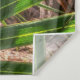The original photograph by ZoeSPEAK on this Wall Tapestry features the shadows of a saw palmetto frond over a background of a palmetto frond. The shadows form soft stripes across the detailed green bands of this tropical palm, with fronds shaped like big fans.