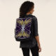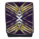 The original design by ZoeSPEAK on this Backpack was made from Zoe’s original photograph of saw palmetto branches. The golden leaves curve outward and meet in the centre to form an X in a bluish silver colour. The shadows lead to a deep purple background.