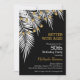 White palm tree fronds with gold light strands on a black background, these are fun birthday party invitations for any age. See MATCHING items in our store.
