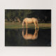 Palomino Grazing By Lake With Reflection Jigsaw Puzzle