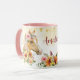 Palomino horse with sunflowers and pink flowers floral girls personalised name mug template. Beautiful watercolor horse portrait, nice for horse loving people.