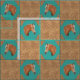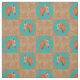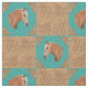 Western decor, sewing or craft fabric featuring a palomino horse with tooled leather print corners and brown leather print and turquoise print blocks.