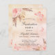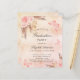A rose gold, blush pink rustic faux metallic looking background. Decorated with rose gold and pink florals, roses, pampas grass, butterflies and a golden cross. Personalise and add a name and the details.