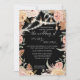 Boho Blush Pink, butter yellow, soft white Floral with Pampas Grass, dried palm leaves and eucalyptus Foliage. Warm Edison lights and twinkle fairy lights over a black background (can be changed) for a romantic evening wedding invitation suite. This artwork was created in watercolor by internationally renowned and licensed artist, Audrey Jeanne Roberts. Copyright.