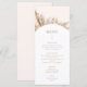 This beautiful bohemian menu card is perfect for your special day. The pampas grass frame gives it a romantic and airy feel, making it the perfect way to invite your guests to celebrate your special day. The invitation has a delicate, yet modern look that will be sure to impress. The soft beige design is sophisticated and eye-catching, making it the perfect way to make your day stand out. With its timeless look and feel, this invitation will be sure to make your guests feel extra special.
