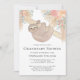 This Grandma Baby Shower Invitation is decorated with a cute smiling sloth surrounded by pampas grass, eucalyptus, and pastel flowers.