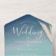 A pampas grass all-in-one wedding invitation. This invitation has a soft ocean-inspired background and white and blue lettering. This invitation includes a tear-away RSVP card. Simply add your information, add this invite to your cart, and enjoy your beautiful wedding.