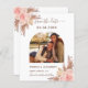 A modern wedding Save the Date photo card. Decorated with blush pink and rose gold florals and pampas grass. Personalise and add your photo and wedding details.