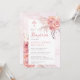 Pampas Grass |Pink Rose Blooms Girl Baby Baptism Invitation