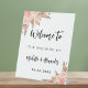 Pampas grass rose gold flowers welcome wedding pedestal sign