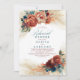 Pampas grass and terracotta, teal blue flowers botanical elegant rehearsal dinner invitations