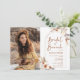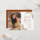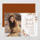 Boho bridal brunch invitation in terracotta burnt orange with a photo on the front. Beautiful modern minimalist design with hand painted botanical accents. Features pampas grass, leaves, roses and typography script font with a little heart. Trendy bohemian desert theme perfect for fall, winter, spring or summer. You can choose printed invitations and/or instant download digital template. Perfect for a stylish bridal shower.