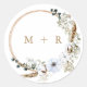 Pampas Grass Wedding Boho Terracotta Monogram Classic Round Sticker