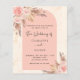 For a modern boho style wedding. An arch frame and rose gold marble print as background. Decorated with rose gold and pink florals, roses and pampas grass. Personalize and add names and details.
