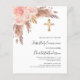Rose gold and blush pink florals, roses and pampas grass and a golden cross. Personalise and add a name and details.
