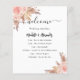 A modern, elegant wedding program, timeline. A white background decorated with pampas grass and blush pink florals, roses. Personalise and add your names and wedding details. Black coloured letters. If you have more text it's possible to reduce the line space.