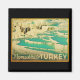 A World Heritage Site, Pamukkale, Turkey is famous for hot springs and calcium pools with gorgeous turquoise water against white framed beauty, as pictured in our vintage travel image.