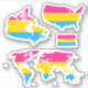 Custom-cut vinyl stickers with maps of The USA, Canada, and the world in the colors of the LGBT pride flag; LGBTQ pride design
