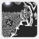 A drawing of the god pan playing his pipes underneath of a tree in the moonlight, with dancers dancing around a bonfire in a forest in the background.