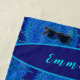 Easily add a name, or other text, to this gorgeous beach towel. Against a background of amazing dark sapphire blue, pretty spiral shaped shells are the centre attraction in this unique nautical design. The shells are a wonderful combination of bright soothing ocean blues. Panama City Beach, in a lovely flowing script, floats in the background. A bold template holds your name or other lettering of your choice. You can imagine the waves rolling in as you relax in the warm sunshine on this stunning towel.