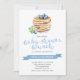 This baby shower brunch invitation features a watercolor pancake stack with blueberries and blue stripes. The blue is sweet for a baby boy, girl, or gender neutral! © 2022 Tea Olive Co.