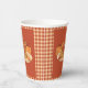 Fun paper cups for any fall celebration (including Thanksgiving) featuring some yummy pumpkin spice pancakes on a reddish-brown and ochre Buffalo plaid pattern . Choose your cup size (8 or 12 oz) . Add a lid if you wish to . Check out our collection for matching paper plates .
