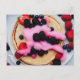 Pancakes with berries: blueberries, strawberries, raspberries, blackberries and cotton candy in the background, Vintage, Postcard