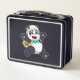 This is a standard metal lunchbox that appears to work just fine. We designed this box ourselves with an uploaded photo and custom text on the front and back. It looks absolutely beautiful except the front of the lunchbox is not centered like it shows in the photo. The print borders don't align with the inset flat part of the box where the preview photo online showed it perfectly centered in there. The back looks nice and centered though.