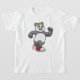 The t-shirt feels and looks great quality, a good thick cotton. It will be a little big for my son, but that means he will be able to wear it and not out grow it too soon. The print was as described on the order when personalised. True size, shape and colour T-shirt- thanks.
