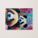 Panda Bear and Cub with Flowers Jigsaw Puzzle