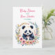 A cute panda bear surrounded by pink and orange flowers watercolor illustration girl's baby shower invitations.