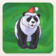 Panda Bear in Santa Hat on Green Square Paper Coaster