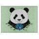 Portrait of a cute Panda bear with a blue lotus flower in a backdrop of green