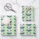 Panda Bear Lotus Flowers Blue Wrapping Paper Sheet