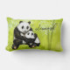 Panda mom with baby - lovingly hand-painted - a pillow with a bamboo forest in soothing green, customizable with name or text, perfect for the nursery or as a gift.