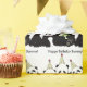 Three cute black and white panda bears ready to help you celebrate with colourful yellow, green, pink and blue birthday presents and party hats. Perfect panda party supplies and party favours for every panda lover. Personalise the text for your special occasion or party.