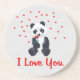 This adorable little Panda Bear holds a red rose and has tiny red hearts floating behind it. Text says: "I Love You." Great Valentine for young, old, big and small alike. Get one for yourself too.