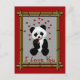 This adorable little Panda Bear holds a red rose and has tiny red hearts floating behind it. Text says: "I Love You." Great Valentine for young, old, big and small alike. Get one for yourself too.