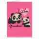 Two panda bears, a pink heart, pink flowers, and text that reads I Love Grandma on T-shirts, bodysuits, bibs, bags, mugs, and other items great for grandma's girl!