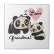 Two panda bears, a pink heart, pink flowers, and text that reads I Love Grandma on T-shirts, bodysuits, bibs, bags, mugs, and other items great for grandma's girl!