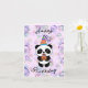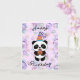 Kawaii panda ‘happy birthday’ met taart en bubbel achtergrond kaart.