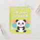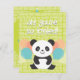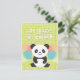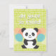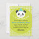 FRONT: Lime and light green pattern background illustrated by a cute sat panda with many party ballons on its back. Written "oh! you're so invited!" BACK: Same pattern as background, featuring a lime green circle, illustrated by a cute kawaii panda face wearing a party hat. under written "to my super panda party". CUSTOMIZE: Change the existing model text by your party information. For font size, colour or type changes use the orange customise it button.