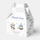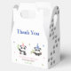 Cute baby panda kids birthday thank you favor box featuring two adorable panda wearing party hat with a panda footprint and surrounded by stars.