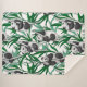 Hand- drawn pattern with giant panda cubs climbing branches and bamboo leaves.