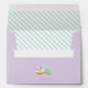Purple envelope with green stripes inside and doughnuts on the back, one of them is a panda doughnut! Great for doughnut, bake shop, or breakfast themed parties. This sweet envelope coordinates with many other items available. Don't forget to add your custom return address on the front!