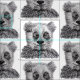 Cool young panda , hand drawing - pencil, black and white panda bear .