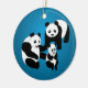 A graphic illustration of a panda bear family of three on a custom Christmas ornament.