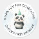 Add the perfect finishing touch to your party favours with this adorable panda-themed thank you sticker! Featuring a happy watercolor panda in a party hat surrounded by soft pastel confetti and gold stars, this round sticker reads “Thank You for Celebrating Oliver’s First Birthday.” Great for sealing treat bags, envelopes, or boxes, and easy to personalise with your child’s name. Ideal for jungle, panda, or animal-themed parties!