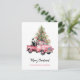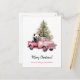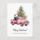 Panda in Retro Pink Truck Christmas tree Holiday Postcard