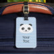Illustration of a cute Panda's head. On the back theres area for your name and mobile number. It is not advisable to show your address while on holiday.